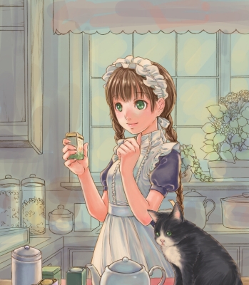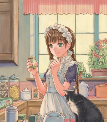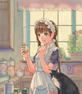・・・・具体的な色を置きます。 ・アフタヌーンティーの準備中です。 ・メイドさんの服装が半そでです。 ということで、この場面は夏の午後。 そんなことを頭の隅に置きながら、部屋の明るさを意識します。 なんとなく、それっぽく、です。そんなにきっちり考えることもないです・・・。 それなりに雰囲気が出ていたらそれで良いと思います。 |