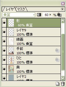 さらにもう一枚レイヤーを加え、 ブレンドモードを「乗算」に、不透明度を60%くらいにします。