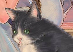 ・ネコにヒゲを加えたり、背中のもふもふ感を加えたり。 |