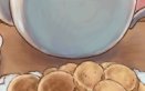 もう少し影を強くしたいところに、青っぽい色を置いていきます。 物が重なったところにできる影などです。